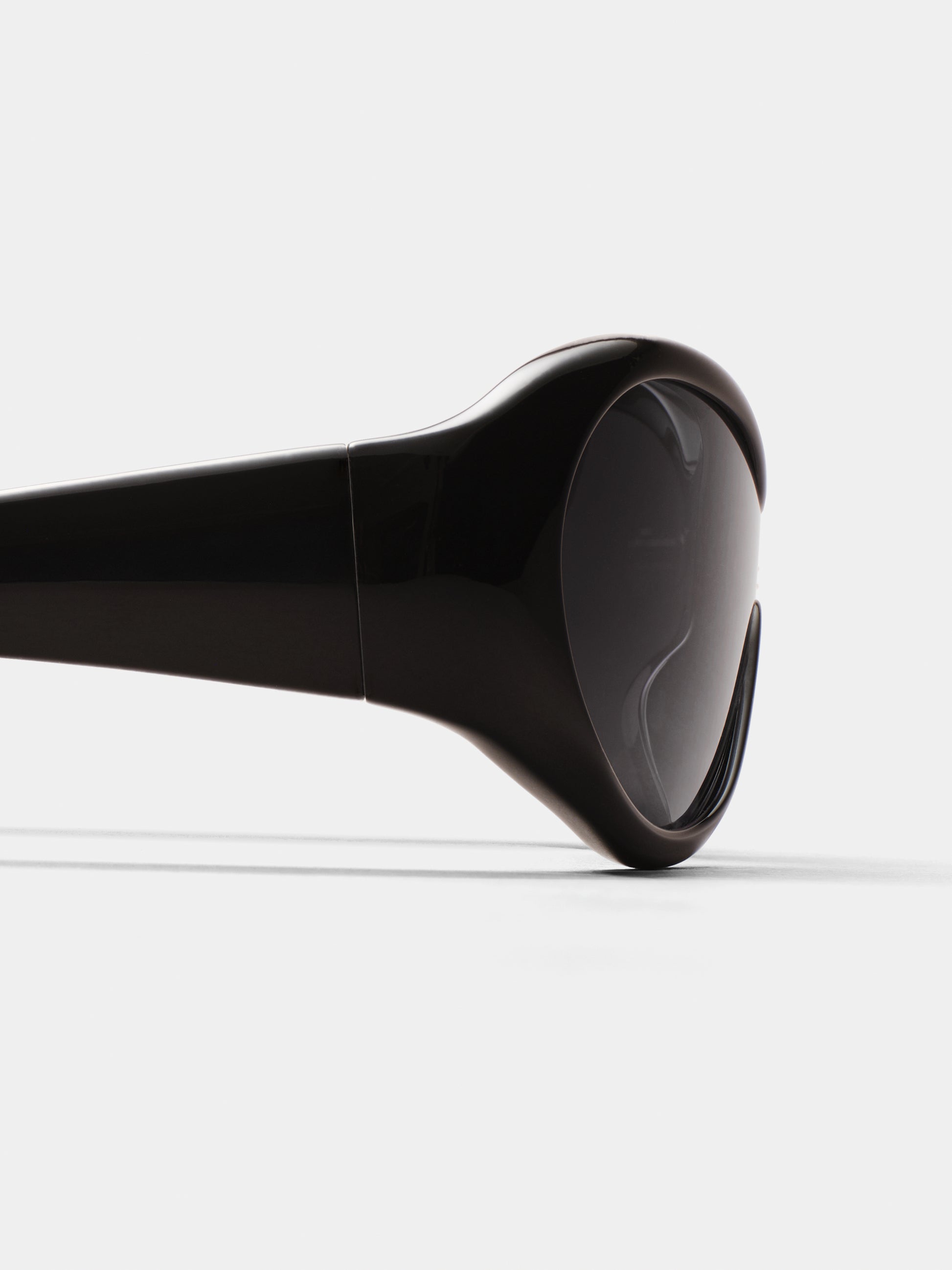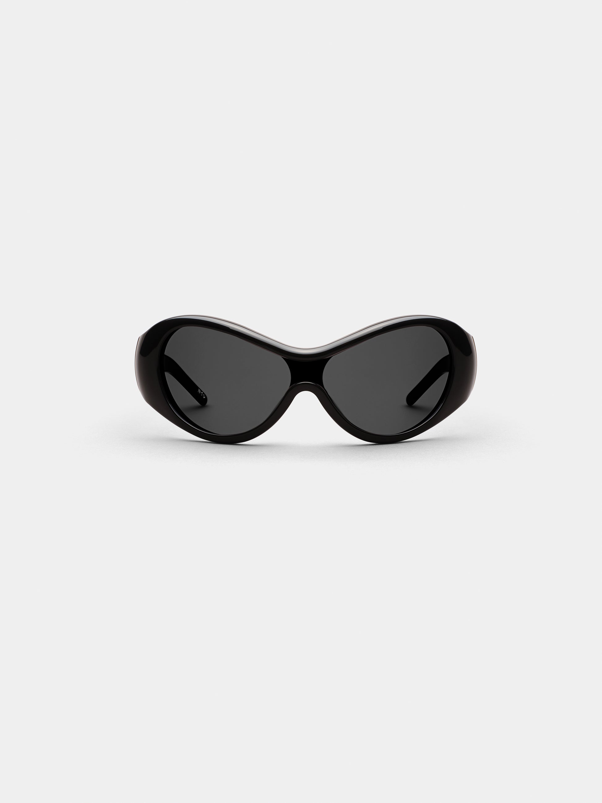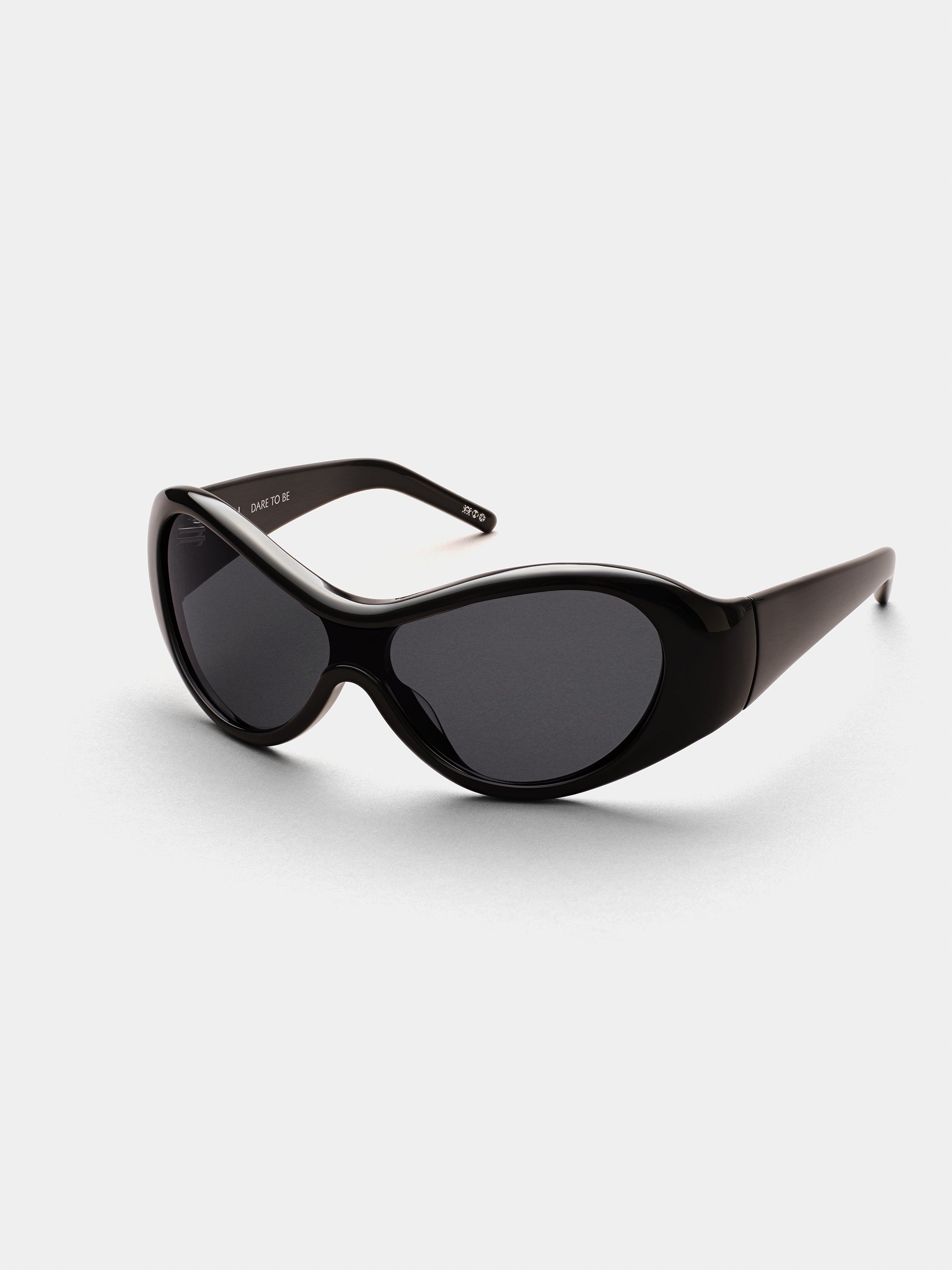 This wraparound shield sunglasses fuses retro-futurism with everyday edge. Ora was designed for those who see the world differently—and want the world to notice. In black, this curved mask frame features deep, high-gloss black acetate paired with sleek black nylon lenses, creating a sharp, all-black silhouette that’s effortlessly striking. It’s a frame with presence—an aura that speaks before you do.